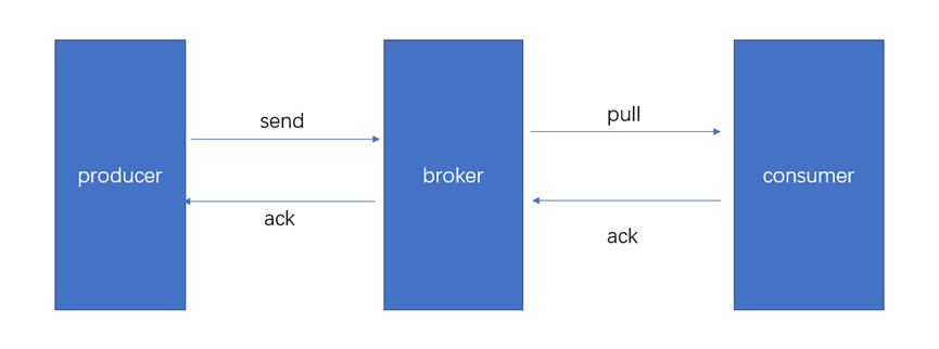 如图3.2.1所示,生产者在将信息发送给broker,当broker将接收到的信息成功落到CommitLog 中和ConsumeQueue中后才会向生产者发送一个确认,生产者只有在收到消息的确认后才认为消息已经发送成功,否则若在一定的时间内没有收到确认则会重试发送消息,若重试仍然出错则抛出异常。这样基本能够保证在消息生产过程中不会有消息丢失。同样消费者只有在成功消费消息后才会向broker发送确认。