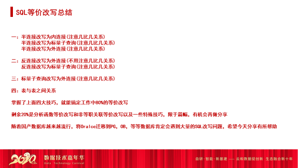 本文根据 罗炳森 老师在 2020数据技术嘉年华 分享的主题《SQL等价改写核心思想》整理而成。