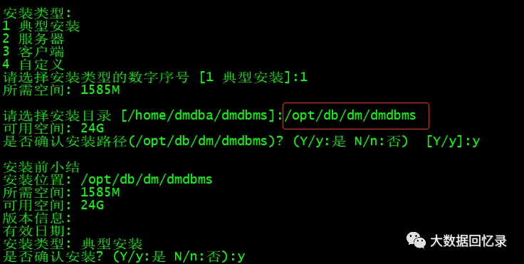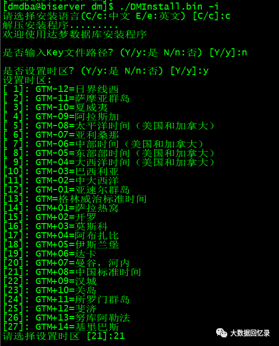 [dmdba@biserver dm]$ ./DMInstall.bin -i