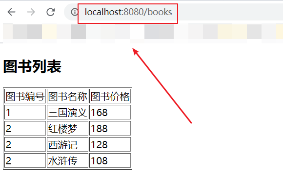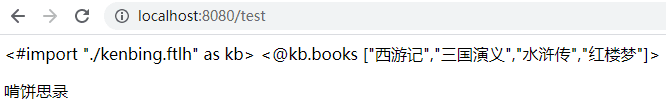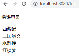 这里的bs其实就是定义的名为books的宏的参数,可以传入多个参数,所以我们在使用这个宏的时候通过集合也传入了参数。页面输出结果如下所示: