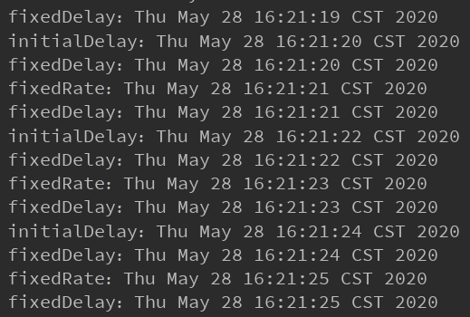 表示在当前任务执行「结束」1秒后开启另一个任务;fixedRate=2000