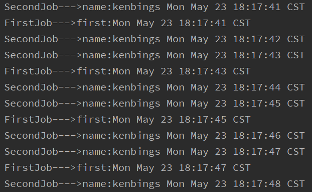 配置完成后,接下来启动SpringBoot项目,定时任务部分打印日志如下所示: