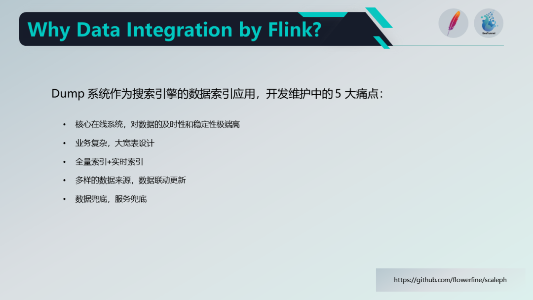 作为国内 Flink 的早期使用者,阿里巴巴在搜索推荐领域拥有悠久的历史和成功的经验,在搜索推荐团队开发维护 Dump 系统的职业经历促使我开始关注使用Flink做A/B实验的报表、数据实时流之外的相关工作,主要也就是用Flink来实现Dump系统为搜索去提供Dump平台的工作,使用Flink做数据集成有5个优点: