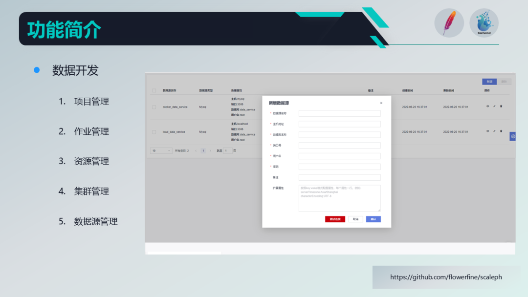 支持用户提前录入一些数据源信息,这样就不用每个任务都把数据源信息输入一遍。同时,还可以去实现数据源的共享和权限限制,防止数据源信息明文泄露。