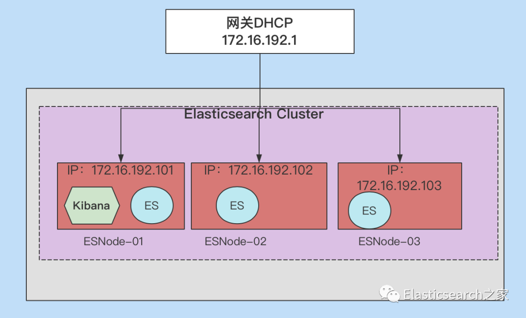 ,每个节点安装Elasticsearch构建集群,在节点ESNode-01安装Kibana。