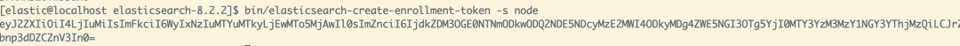 # 生成加入节点的tokenbin/elasticsearch-create-enrollment-token -s node# 输出eyJ2ZXIiOiI4LjIuMiIsImFkciI6WyIxNzIuMTYuMTkyLjEwMTo5MjAwIl0sImZnciI6IjdkZDM3OGE0NTNmODkwODQ2NDE5NDcyMzE2MWI4ODkyMDg4ZWE5NGI3OTg5YjI0MTY3YzM3MzY1NGY3YThjMzQiLCJrZXkiOiJVenlPam9FQlZET2hnc0tVVlZxTDppamJqbHYyR1JHQ1Zybnp3dDZCZnV3In0=