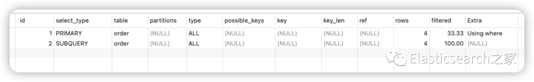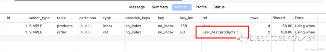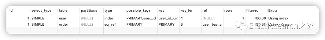 两个语句的id都是1,但是按照从上往下执行的规则,先执行针对user表的查询,再执行针对order表的查询,符合我们的预期