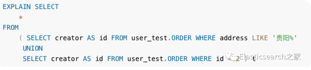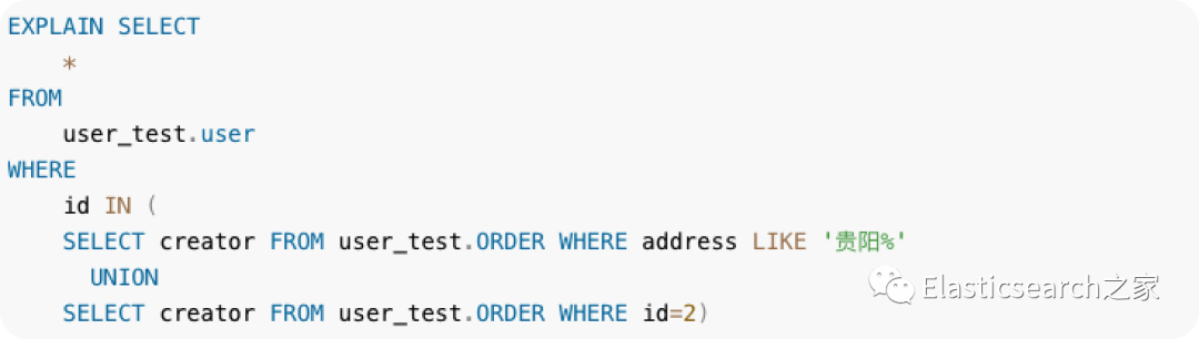 (8)dependent subquery 在select或者where列表中包含的子查询,并且外部查询依赖于select的结果 理解了上述的dependent union,再来理解dependent subquery会更好理解一些,实际上在我们的案例6中出现的第一个子句SELECT creator FROM user_test.ORDER WHERE address LIKE '贵阳%'