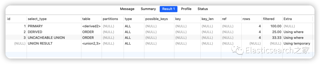 ,这个针对union临时表的查询被标注为了UNION RESULT