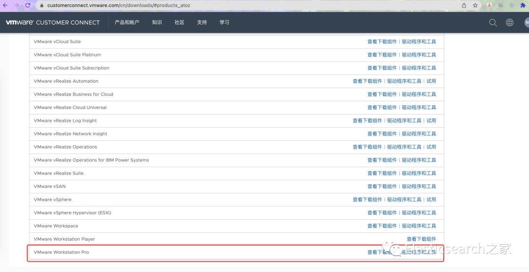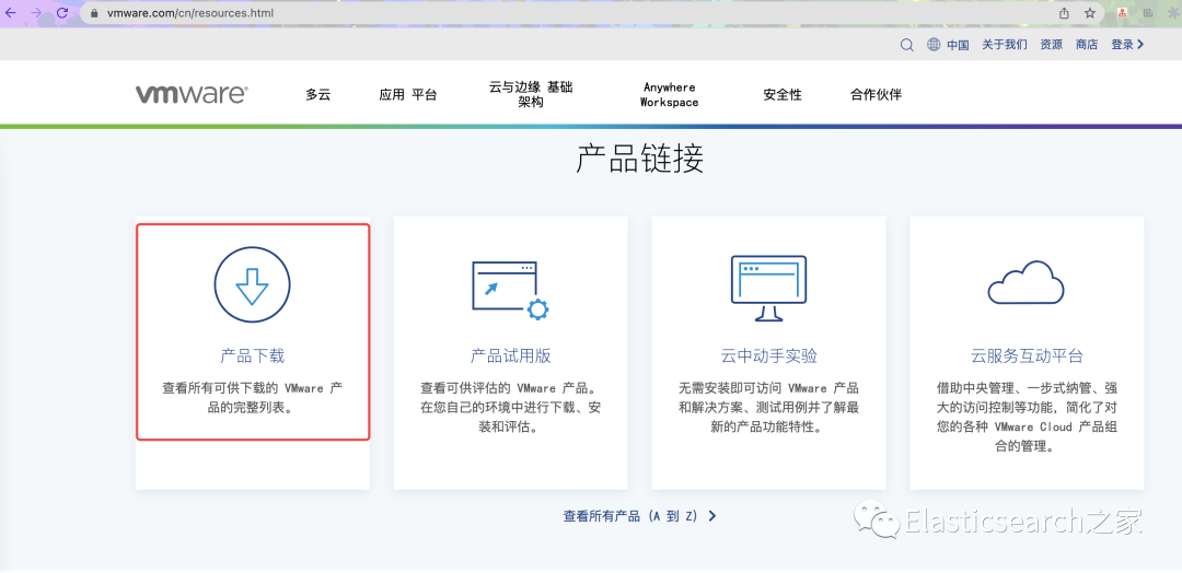 VMware官方产品下载网站: https://www.vmware.com/cn/resources.html[2]