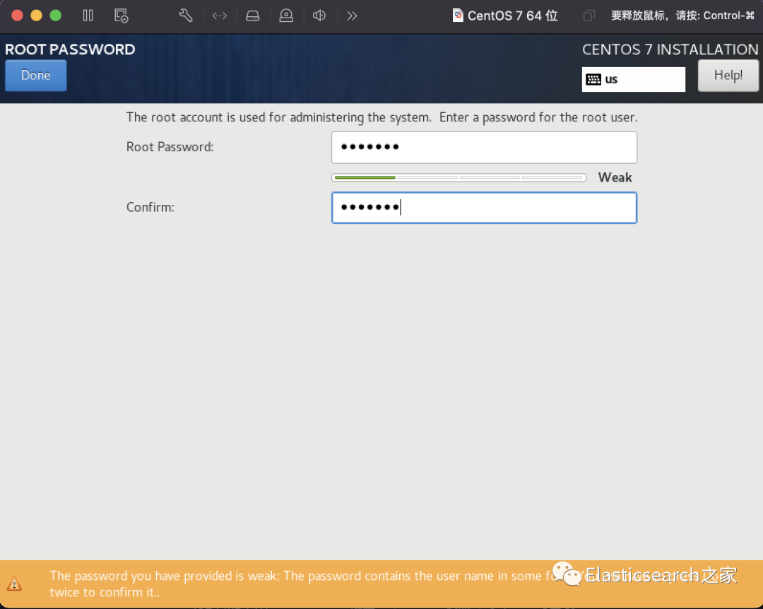 在等待的过程中,我们可以设置root密码,会有密码强度的验证。