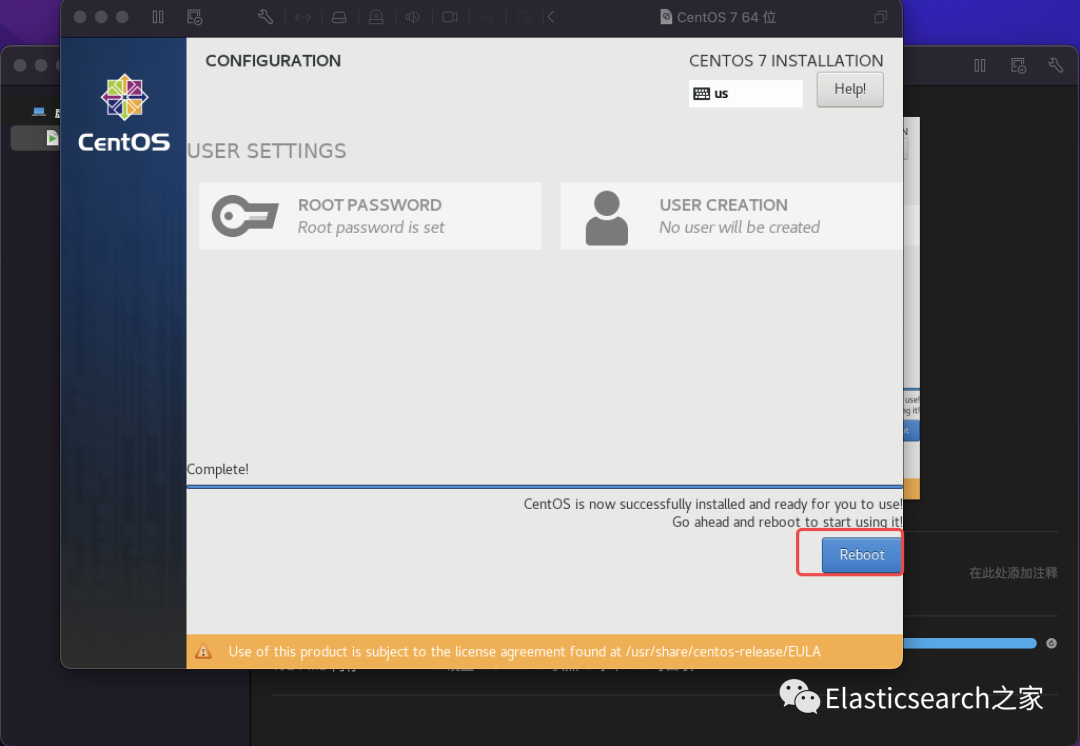 启动虚拟机,开始安装CentOS7,等待安装完成即可