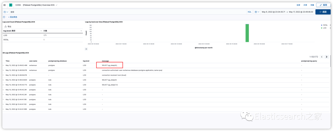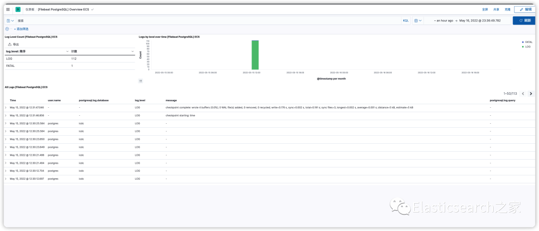 到此,我们的postgresql日志监控平台就搭建完成了,大家不妨动手操作试试吧
