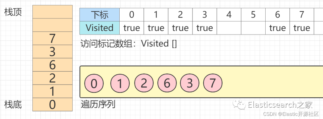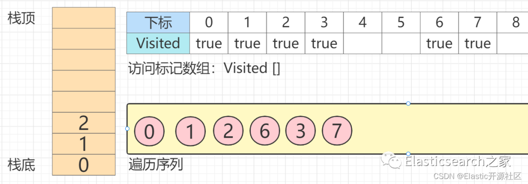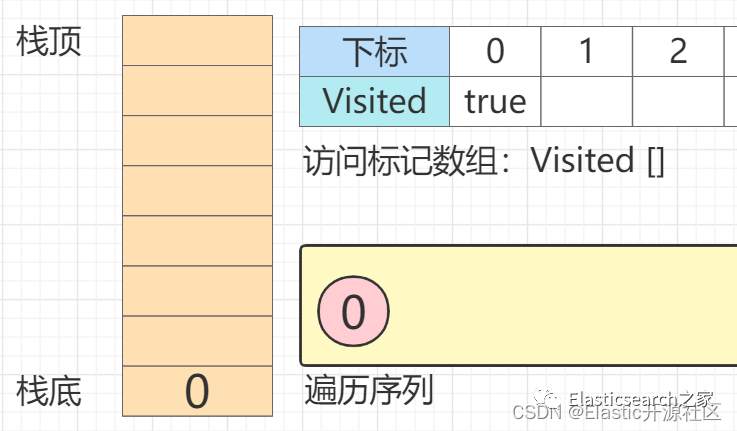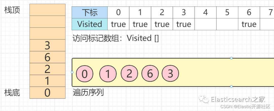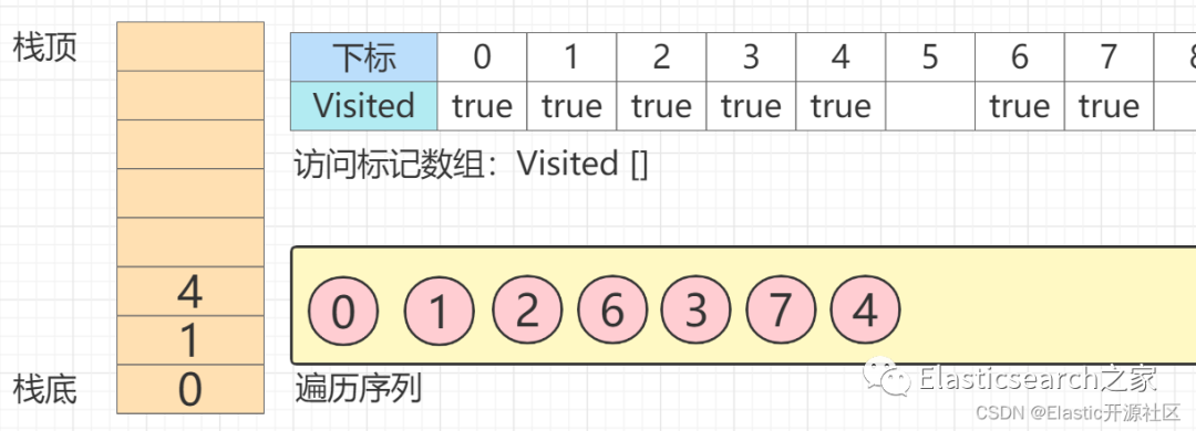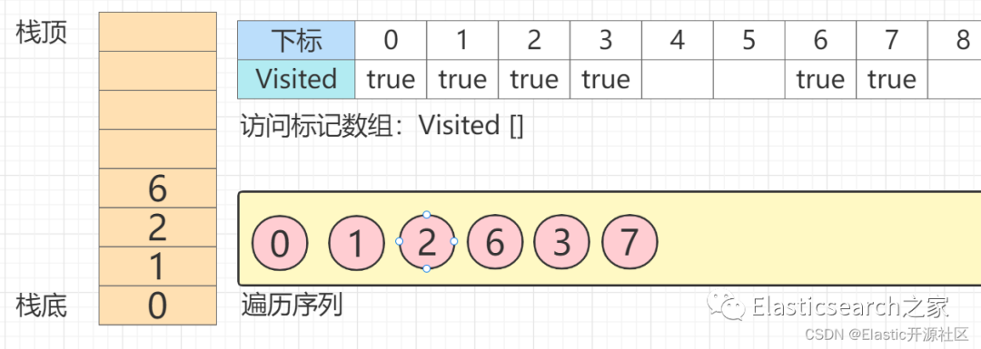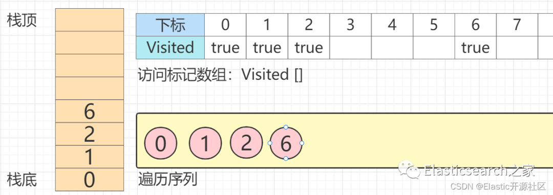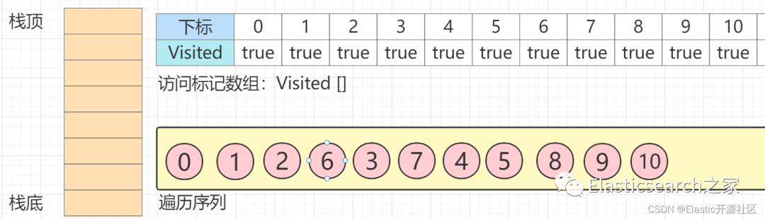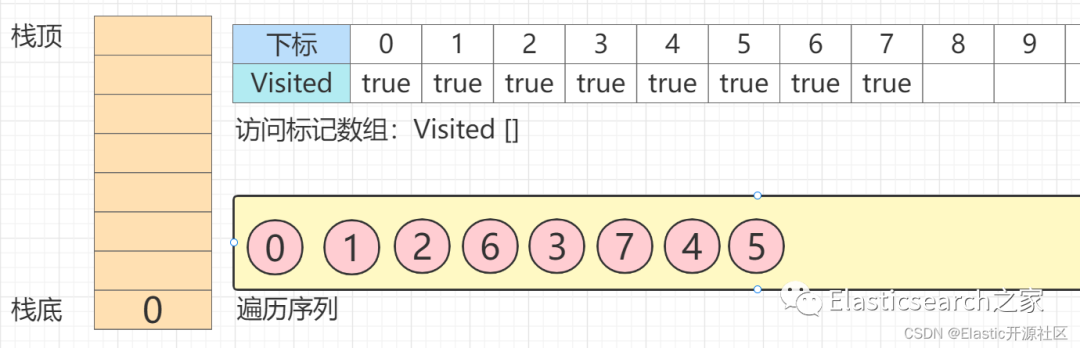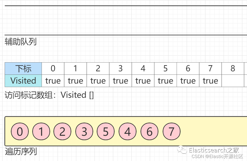 我们借助 Visited数组,来标识当前节点 n 是否被访问过,空值代表 false.
