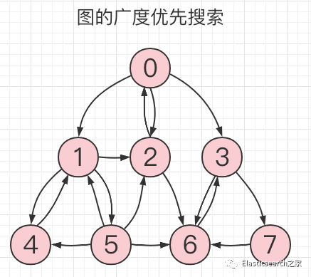 不同,图没有根节点,并且是可以回溯的,比如下图所示,为一个 8 节点的图搜索表示