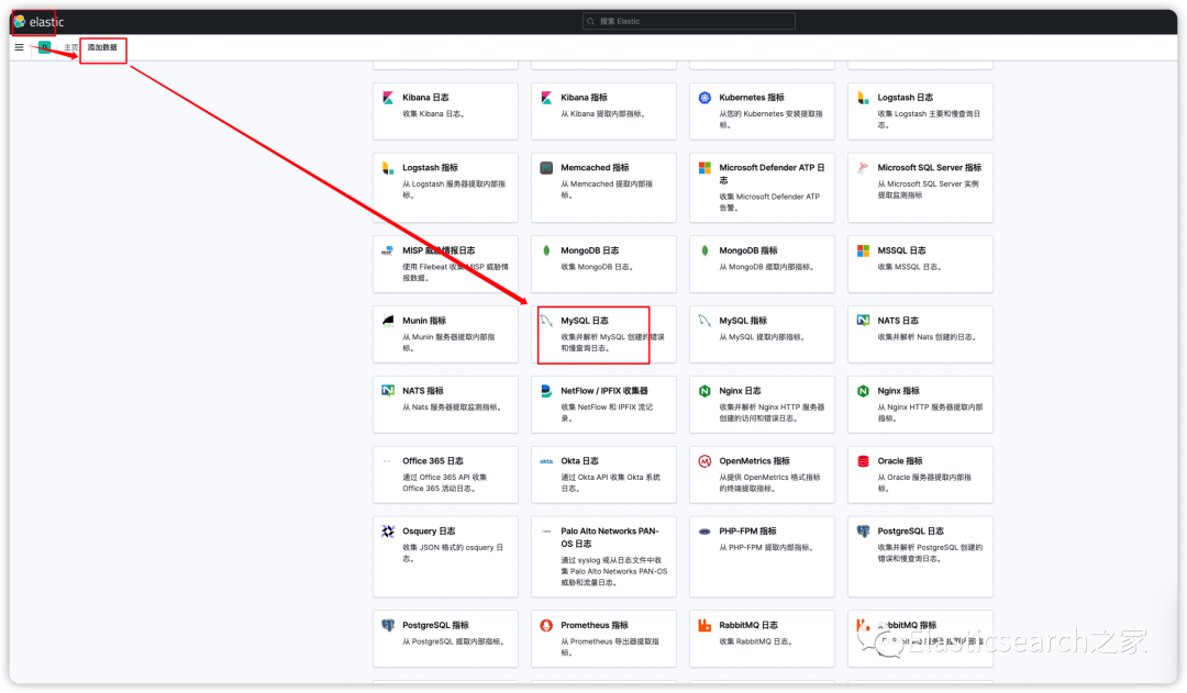 以下安装步骤也可以在kibana主页>添加数据>MySQL日志页面中看到