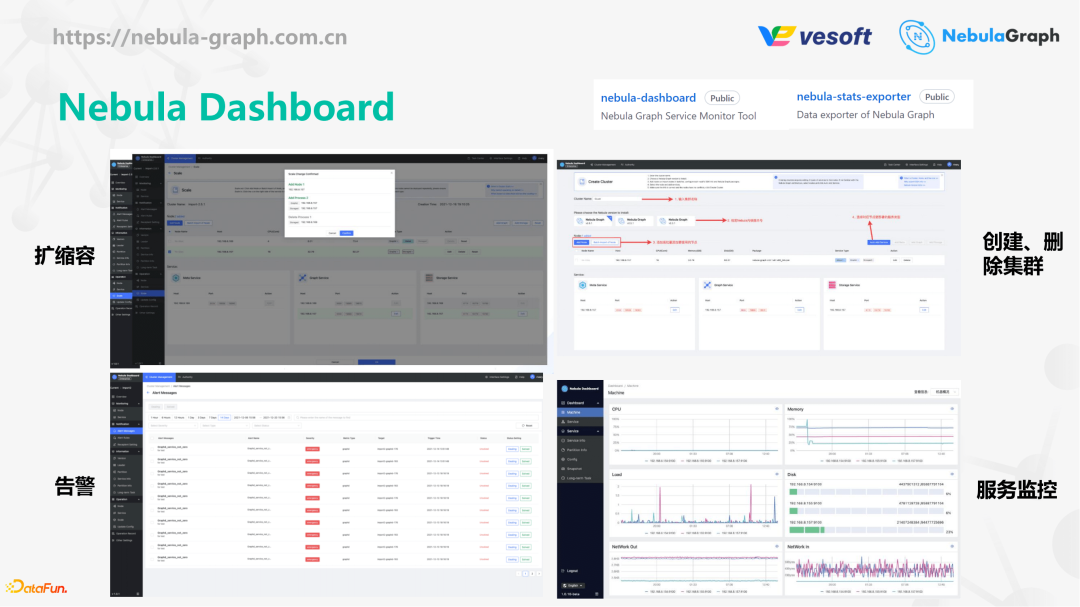 Nebula Dashboard 是日常运维监控使用的,提供扩缩容、告警等功能。