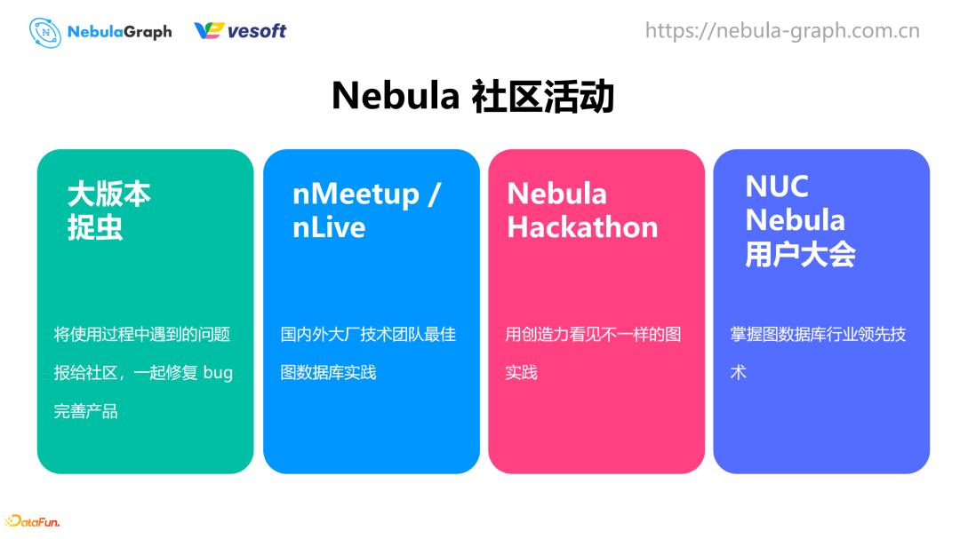 今年的社区也是一直会有活动,比较大的活动包括 Nebula Hackathon 黑客马拉松和 NUC 用户大会,当然实际怎么开展会受到疫情的影响。