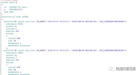 create table b (id int ,a varchar2(10),time date);普通堆表