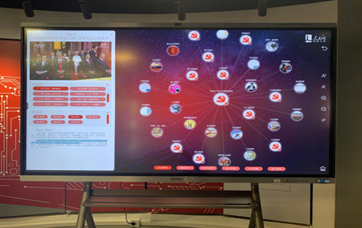 在红色球幕展厅部署完成的同时,另一款“拳头产品”——智慧党建内容服务云平台同步完成产品升级迭代。该产品借助领先的NLP(自然语言处理)技术,深挖丰富的党史内容,借助深度学习的技术手段,将丰富的党史资料整理成了两万多个知识节点,利用语义关联、协同推荐等人工智能技术,两万多个党史知识节点被有机组合成一个高维度党史知识图谱,仿若灿烂的知识星河。