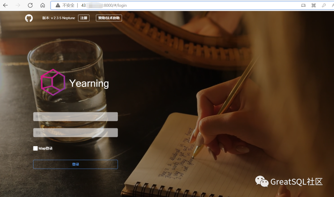 Yearning在服务器上部署运行后,就可以通过http://服务器ip:8000/#/login进行访问了,默认账号为初始化账号,页面如图: