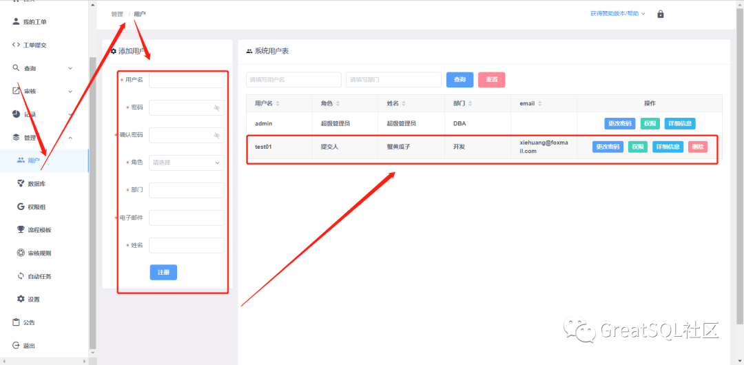 (Tue Jun 14 14:26:42 2022)[root@GreatSQL][Yearning]>select username,rule,department,real_name from core_accounts;