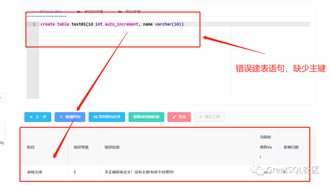 用户自己进行提交前必须经过检查,假如输入错误的语句将无法提交: