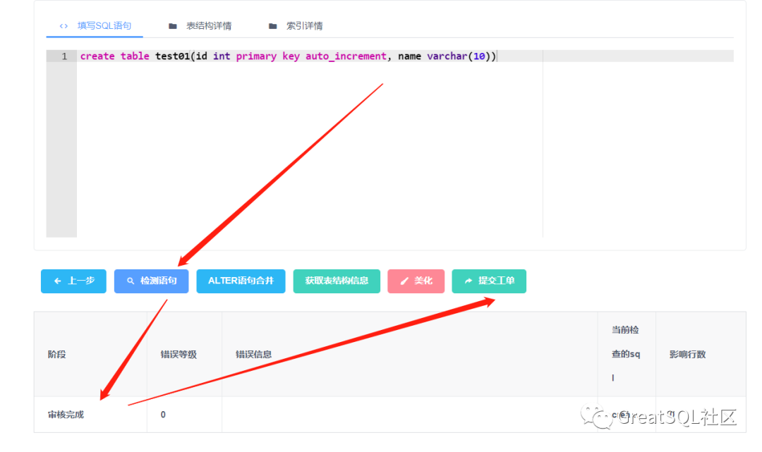 输入语法正确的语句后提交: