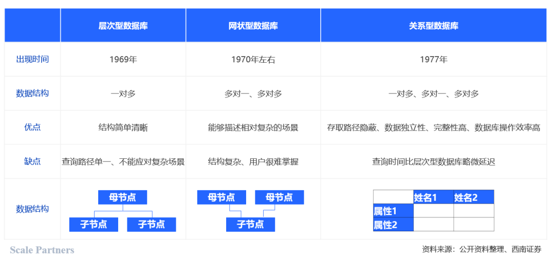 数据库发展经历萌芽-商业化起步-发展成熟阶段。