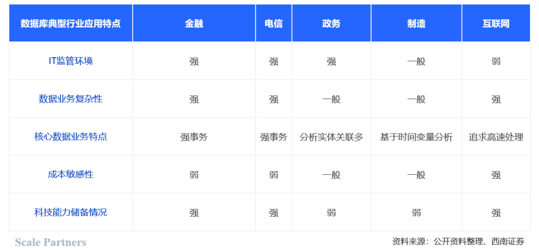 底层代码积累与产品迭代需要与具体业务场景深度融合。国内厂商诞生之初就面对Oracle、IBM 的激烈竞争,难以拥有接触客户核心业务场景的机会,目前国家要求金融行业全替换,也是针对办公系统的数据库全替换,在业务系统层面更多的是在小业务系统上做实验,现在去谈核心业务系统的数据库国产化还为时尚早。阿里、腾讯的数据库产品之所以能够成为国内代表,依靠的是与自身电商、支付、社交等核心业务场景的不断打磨,而其他数据库公司之前难以拥有这样的机会。因此,厂商要先争取拿到小业务系统的备份系统机会。