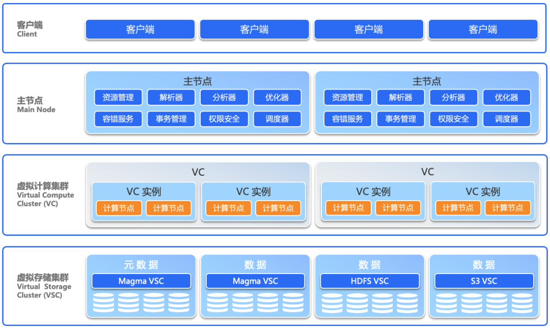 产品架构全球领先:采用计算存储分离的云原生架构,弹性扩展,可扩展至上万节点,利用云服务器、分布式存储,对数据基础设施的可扩展性进行深度优化,充分满足云端应用高度弹性、无限扩容的要求;