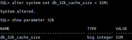登录到CDB,可以看到db_32k_cache_size是0,