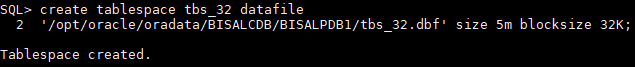 登录PDB,创建32k表空间,
