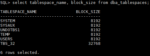 可以看到,已经创建了一个32k的表空间,