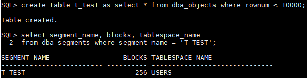 为了更直观说明,我们在默认8k数据块的表空间中创建一张表,其占据的数据块个数是256,