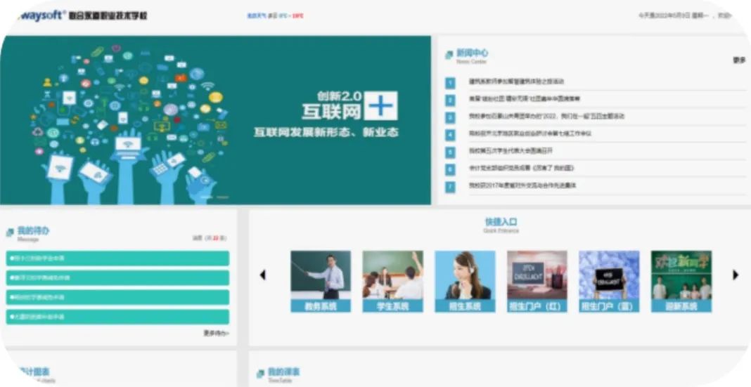 通过协同办公、教学管理、科研管理、财务管理等核心系统搭建,帮助职业院校实现随时随地办公,提升教科研管理水平,构建透明高效的校务治理以及融合创新的网络科研氛围。