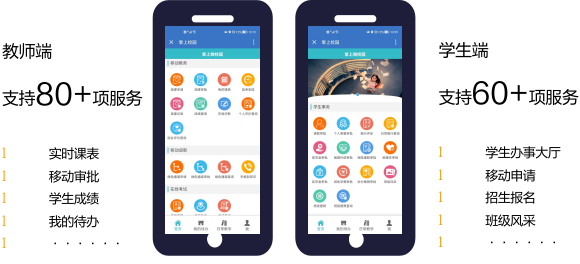 打破物理校园边界,为广大师生提供数字图书馆、校园一卡通、安全监控、虚拟校园等个性化、一站式、线上线下相结合的综合服务,营造丰富多彩的校园文化和提供方便周到的校园生活。