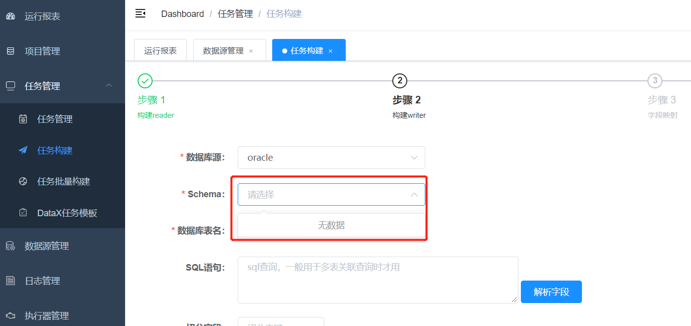 datax迁移oracle to sundb时,任务构建无法获取oracle数据源的schema信息