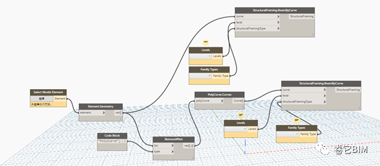 从CAD图纸提取构件轮廓、位置信息,通过Dynamo处理信息后,在Revit项目中自动放置相应构件类型的构件实例,由于构件数量庞大,Dynamo数据处理较慢,分类型一步一步完成“翻模”。