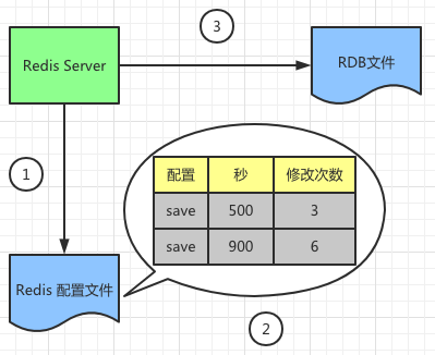 Redis Server直接读取Redis 配置文件的内容,获取RDB持久化的信息。