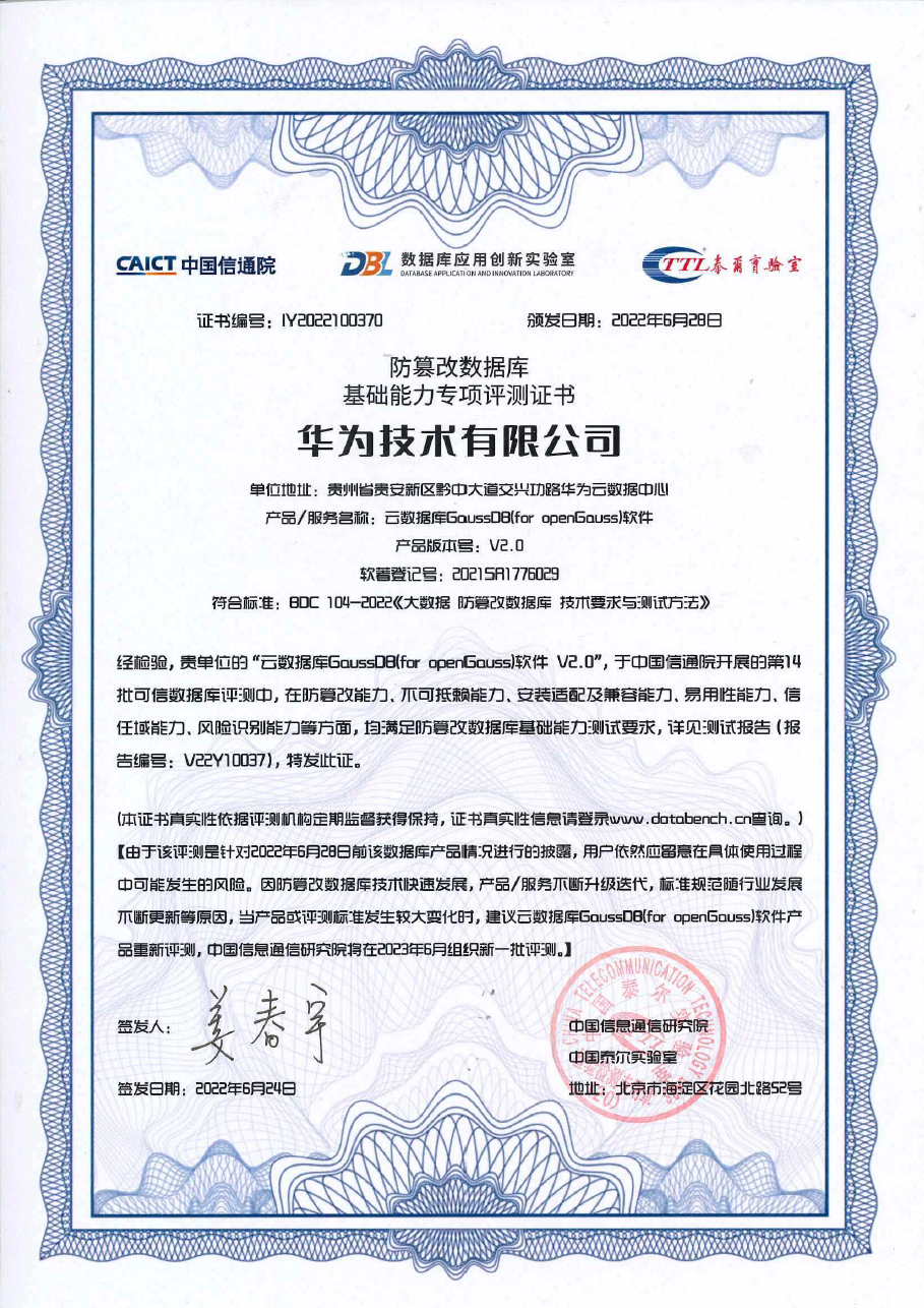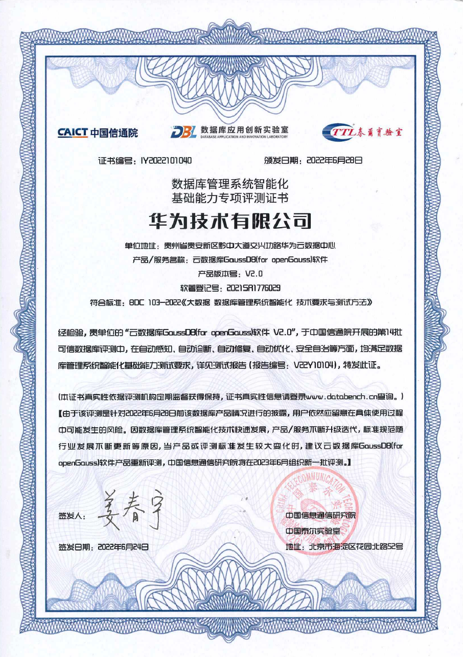 近日,中国信息通信研究院举行了第十四批“可信数据库”评测评审会。其中,华为云GaussDB(for openGauss)分布式数据库和RDS for MySQL关系型数据库经过产品资料审核、测试报告审核、质询与答疑、集中评议等各环节的严苛考验,通过多项评测项目,获得专家团队一致认可。