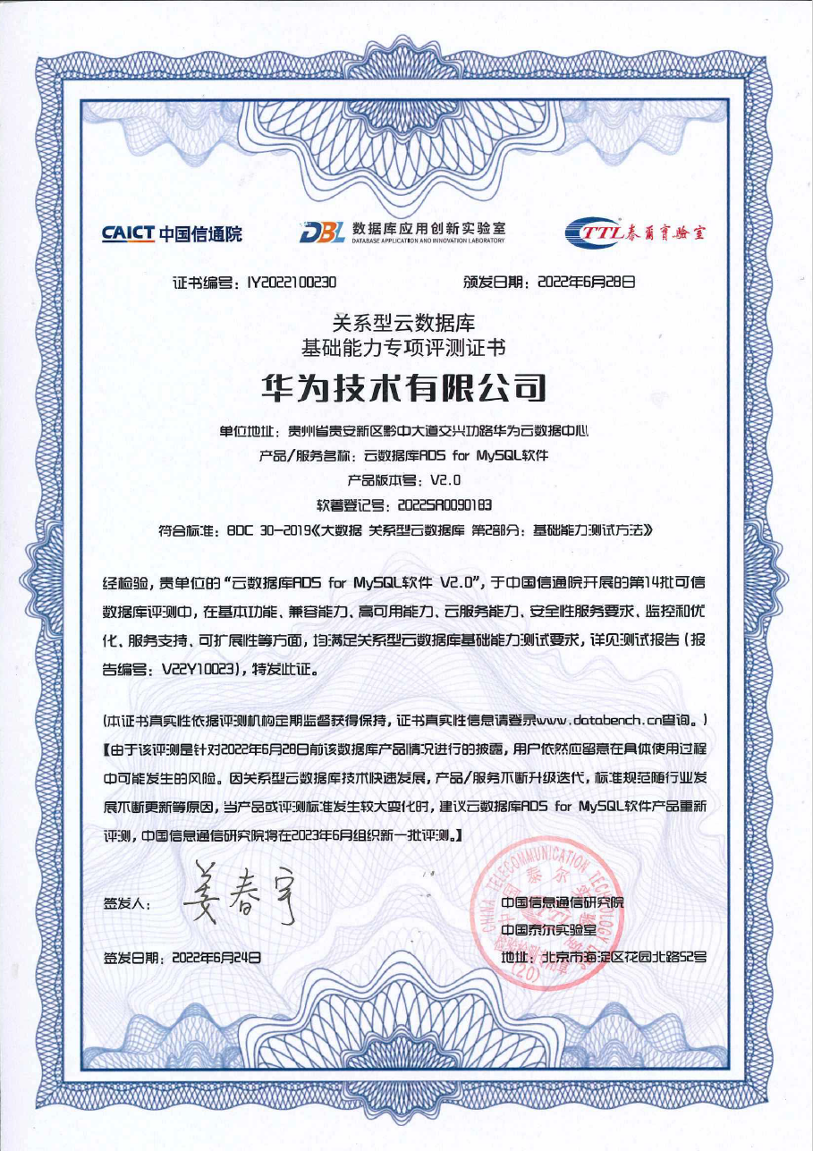 此外,华为云另一款云数据库RDS for MySQL也在本次评测中顺利完成关系型云数据库基础能力的所有测试。