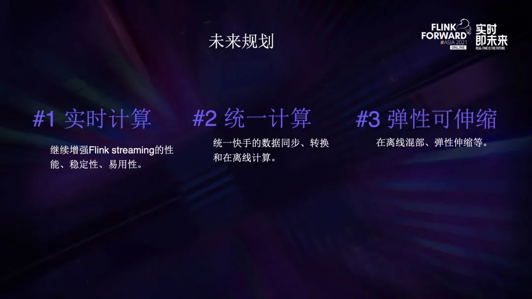 - 首先是实时计算,进一步增强 Flink 的性能、稳定性和应用性,并通过实时计算来加速各种业务场景。