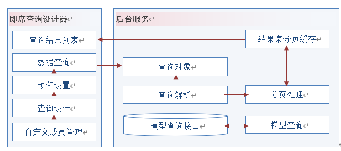 吉查是简单快速灵活的数据查询工具。用户通过简单拖拽,任意组合查询内容及查询条件,其构架如下图所示: