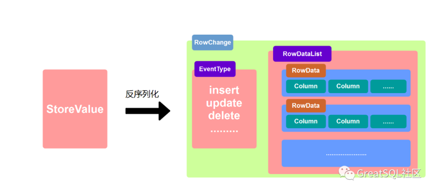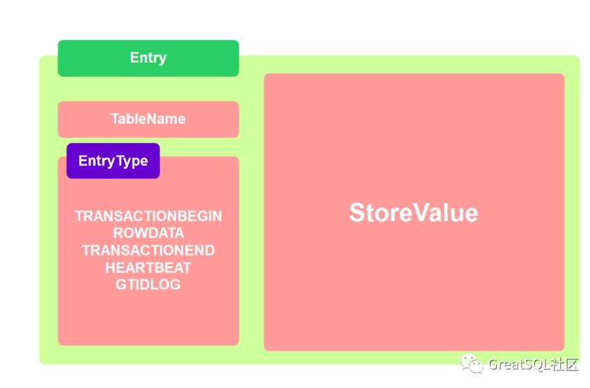 Entry中包含 TableName 、EntryType和StoreValue,其中StoreValue 包含了数据变化的内容。如下: