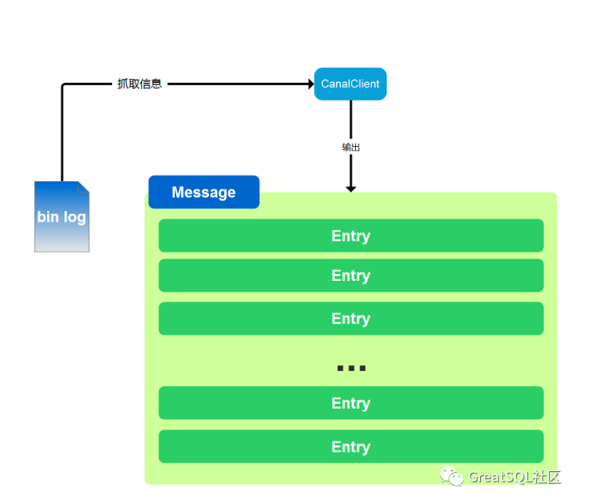 }从代码中可以看出,当系统与Canal建立连接后可以获取Message来监控数据库的操作,Message是一次Canal从MySQL的 bin log 中抓取的信息,一个Message中可以有多个SQL执行的结果,每个SQL执行结果(SQL命令)称为Entry,如图: