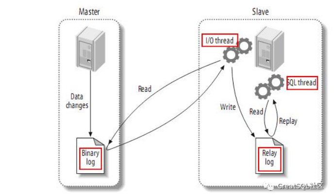 - Slave从库读取从重做中继日志中的事件,将改变反映它自己的数据同步到数据库中。