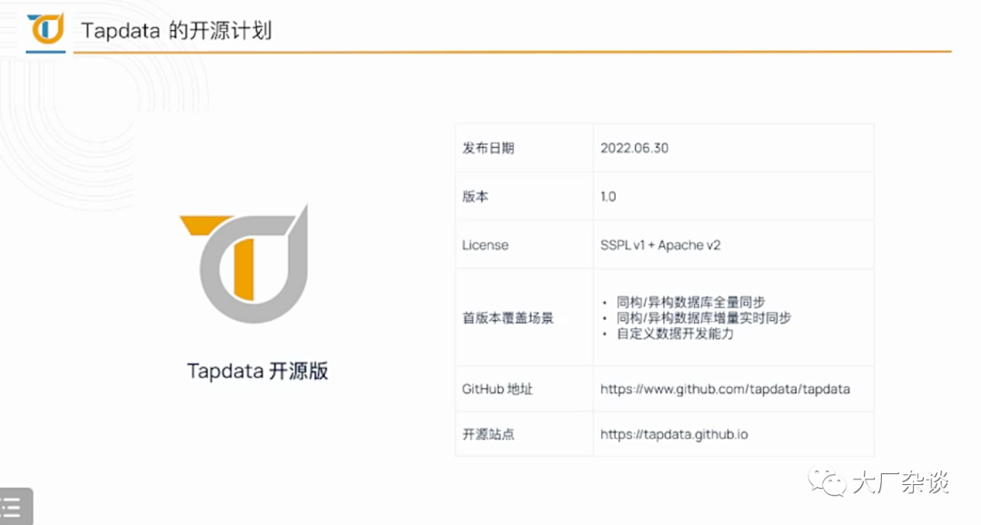 “ 杂谈哥前几日关注了Tapdata的发布会,Tapdata发布开源版及其开源计划”