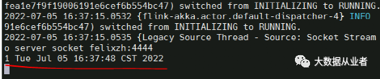 [root@felixzh home]# nc -l 4444[root@felixzh home]# java -cp FlinkIdeaDemo-1.0.jar:UserDefinedFunctions-1.0.jar NCFlinkIdea MyMapFunction1