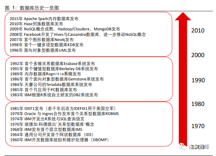 数据库这一行业技术发源并兴起于美国,如今已经广泛应用于全世界各企业之中。这一 产业从诞生到日趋成熟总共经历了三个发展阶段。